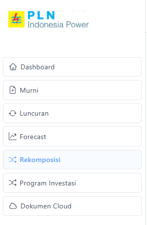 Untuk mengakses menu Rekomposisi, setelah login pada dashboard Indonesia Power klik Rekomposisi